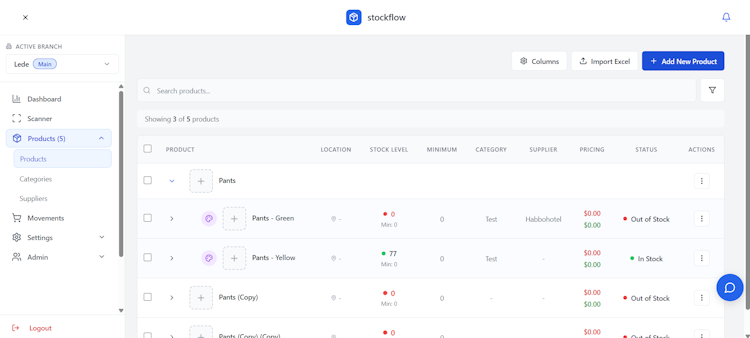 StockFlow’s user interface