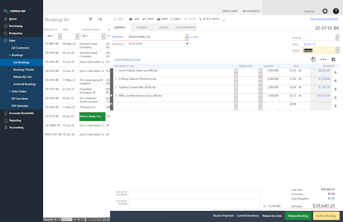 Strinos is a full-suite application offering that allows organizations to track and integrate inventory, lot quality, production, sales, compliance, and purchasing requirements. The platform is purpose-built with advanced inventory management, quality control, and lot tracking unique to production-oriented agri-businesses, such as seed production and wineries.