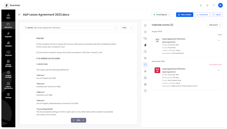 Created by legal professionals, Summize is simple to use and manage. It simplifies and accelerates the entire contract lifecycle.