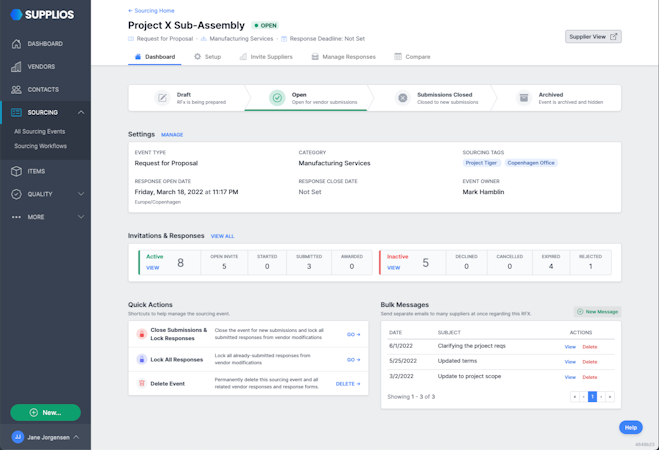 The platform features a modular architecture encompassing several key functional areas tailored to manufacturing environments. Its supplier portal module provides a custom-branded, secure interface that can be deployed without extensive IT support, offering centralized communication channels that replace disorganized email and spreadsheet-based processes. The sourcing and procurement module delivers specialized RFQ/RFP/RFI capabilities built for direct materials procurement, supporting both single part and complete bill-of-materials sourcing with CAD file and technical specification uploads. The system maintains comprehensive part-level sourcing history and includes built-in analysis tools for side-by-side quote comparisons against current and target costs.