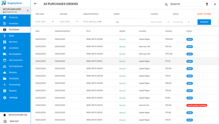 The application enables restaurateurs to search, purchase, and interact with sellers, manage seller-wise ledgers, and track cash flows with real-time accounting. With SupplyNote, users can record inventory details such as product name, SKU, and quantity. Managers can gain insights about low-stock items and control inventory wastage or pilferage. It also lets users automatically create carts based on sales, wastages, or recipes.
