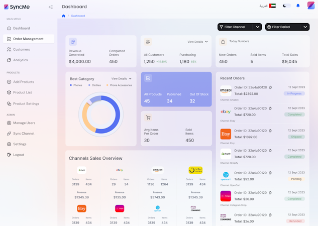 SyncMe is a multi-channel inventory and order management software platform that synchronizes real-time operations across diverse e-commerce channels. The platform enables merchants and retailers operating multiple online storefronts in the United States, Europe, and the Middle East and North Africa region to maintain consistent inventory levels, product listings, and order records from a centralized dashboard. Designed for enterprises with complex sales environments, the system supports integration with leading marketplaces and storefronts.