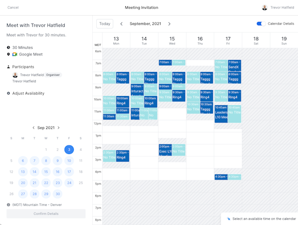 It does this by allowing users to connect with the contacts in their network and their calendars to understand available times to meet.