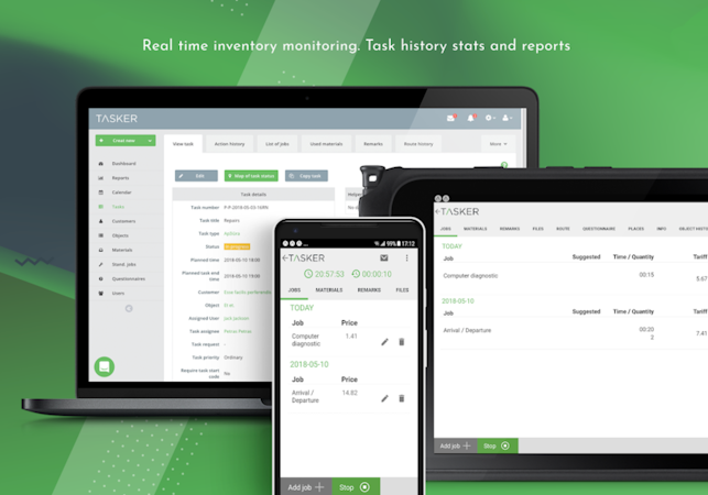 Tools for field force task management enable office employees to assign jobs in real time and monitor their execution, including when the job was assigned, begun, performed, and completed. TASKER records and displays full work history on each assignment with detailed notes on completion or suspension. All raw data is collected into the system to provide users with visual statistical reports to help make fact-based decisions, and plan and forecast accurately. Time and location tracking features can detect exactly where workers are at all times, helping managers to efficiently assign or reassign tasks. All paper documents, such as job sheets, estimates, orders and invoices are digitized via Frontu, and can be easily shared with team members.