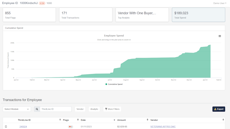 ThirdLine technology analyzes all transactions and workflow processes in your accounting and ERP system with 300+ analytics and A.I. All analytics disaggregate to tell you risk by employee, vendor, department, GL account number, and process area.