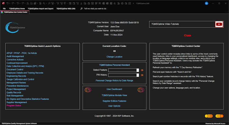 TQMSOptima’s user interface