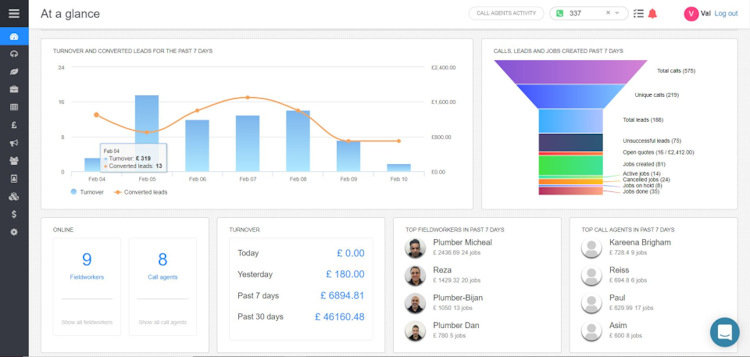 Tryoup lets businesses schedule appointments, assign tasks to team members, and track the location of field agents using GPS technology. Managers can chat with organizational departments, and send project updates to clients via email or text messages. It also allows users to track incoming calls, and manage the entire lead lifecycle, from source identification to customer onboarding.