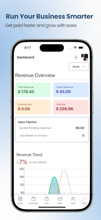 Get clear revenue dashboards with comparisons to previous periods and accurate financial forecasts. Track employee utilization, average job times, and quote approvals to uncover productivity gaps and optimize field operations.