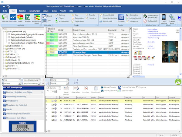 Wartungsplaner is a German maintenance planner that is suitable for recording test reports, test results and test protocols. With this software, you can plan, carry out and document the tests and maintenance of the equipment.