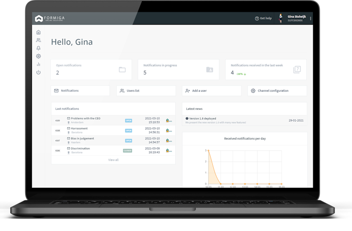 Through WhistleForm, users can create and manage the reporting channels of their companies with various tools to manage files and all communication with the complainant internally. All this in a simple way, easy to learn, adaptable to your internal work processes and efficiently. High security of all the information contained, hosted on certified European servers.