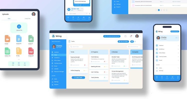 Every client has a dedicated client success manager to help delegate work. Software tools like Workflows and Credentials Manager make interacting with Wing's remote talent efficient, easy, and secure. Artificial Intelligence enables quality management in the background to ensure an unmatched user experience.