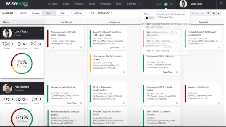 WiseTeam is a cloud-based project management software designed for businesses across legal, architecture, real estate, engineering and various other industries. The solution lets managers monitor time and track project status.