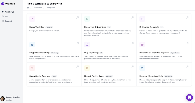 - Build advanced business process automation with ease and speed using Wrangle's no-code workflow software. Choose from a gallery of templates or create from scratch.