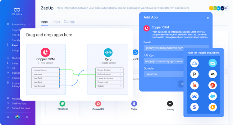 ZapUp by 500apps, is an app integration software to enhance productivity by eliminating time spent on redundant tasks while also creating workflows to connect multiple apps. It has a unique drag-and-drop workflow editor that allows you to create unlimited complex workflows to streamline your workflows.