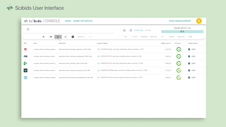 Scibids’s user interface