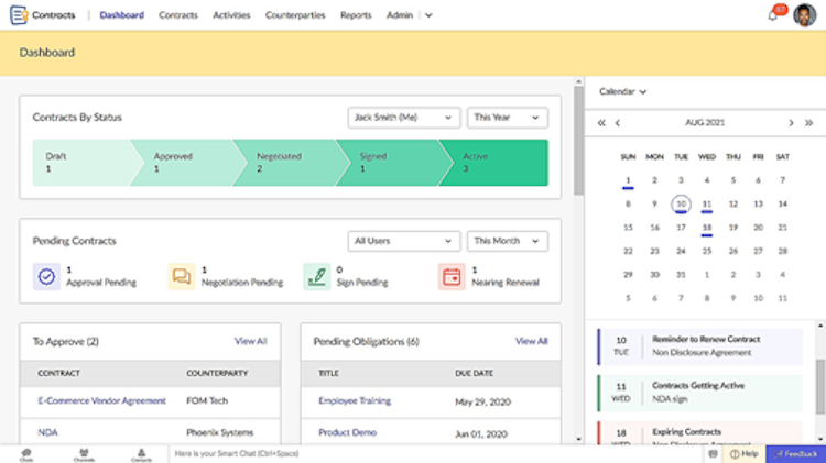 Zoho Contracts is a simple yet comprehensive CLM software that positively transforms contracting processes. It facilitates better business outcomes by holistically addressing the following aspects.