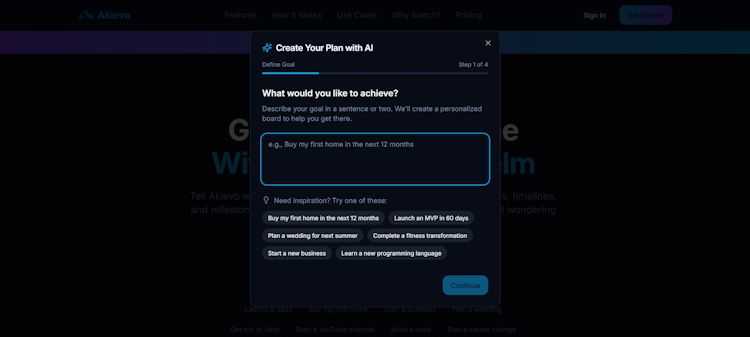 Akievo is an AI-powered project management platform that transforms user-defined goals into structured, executable project plans through automated task generation and intelligent planning assistance. It serves both individual users managing personal objectives and professional teams coordinating business initiatives across industries such as product development, marketing, operations, and client delivery. The platform addresses project initiation paralysis by eliminating the blank slate problem when beginning new initiatives. A complete framework of tasks, subtasks, timelines, and milestones emerges from simple goal descriptions.