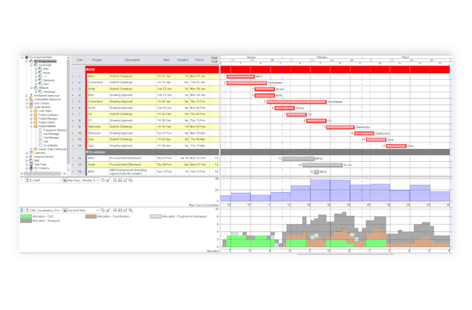 Asta Powerproject features a sophisticated set of planning and scheduling tools that enable users to build comprehensive project schedules efficiently. Its task pools and code libraries facilitate rapid plan development, while the intuitive Gantt chart interface allows for drawing and linking tasks, critical path analysis, and assignment of codes, calendars, resources, and costs—all from within a single view. Resource management capabilities also permit allocation and tracking of personnel, equipment, and materials across multiple projects simultaneously.