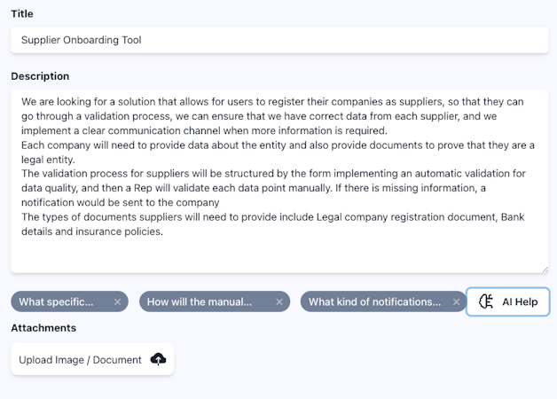 Blueprint is an AI-powered project management tool that streamlines the planning, requirements, and execution of IT projects. The platform automates the conversion of ideas into ready-to-go scopes, user stories, and test cases.