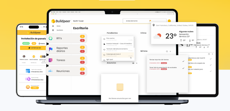 Buildpeer is a construction project management software that centralizes communication and information sharing for teams. The platform enables users to store, organize, and share all project documentation, including files, blueprints, photos, videos, and more, in a single secure cloud location.