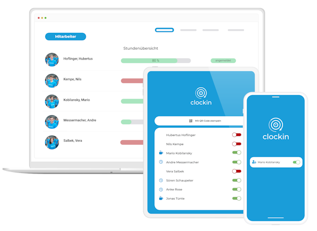 With clockin, companies can easily record the working hours of employees, record times for activities, and document orders. The app can be used by non-technical people. At the end of the month, working times can be transferred directly to DATEV or lexoffice via an interface. The integration into the business systems can be completed independently in just a few steps. clockin support offers a range of services to help with this.