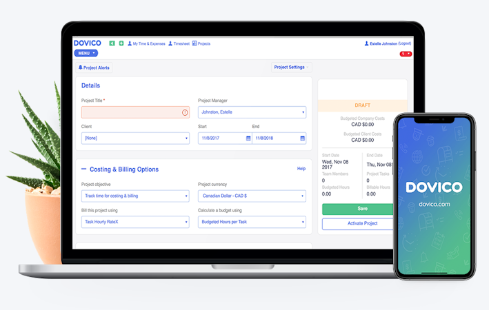 Dovico Timesheet helps small businesses track valuable billable time & costs. With a very easy and intuitive online timesheet, employees enter their work time towards projects and tasks that they perform every day. Insightful and real-time reporting is then available to highlight the efforts of your team and reduces the anxiety of not knowing where a project stands.