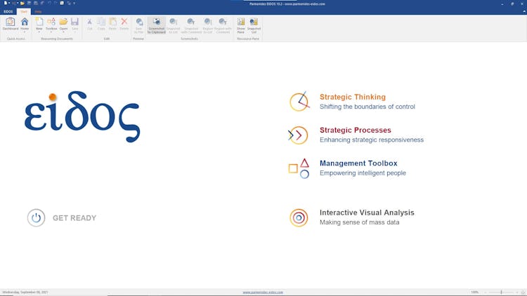 The software allows enterprises to benefit from single- to long-term integrated, scalable strategy architectures to address their challenges. EIDOS increases the efficiency of reasoning processes and the quality of decisions by structuring problem-solving, decision-making, or policy development processes into its components. The model helps relate the needed support tools to the different reasoning steps and bridges the gap between theoretical knowledge and practical application.