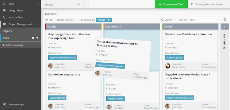 Fusioo aims to provide teams with full visibility into their workload, and aid collaboration with features including real-time notifications regarding activity, task assignment, @mentions, discussion boards, and more. Project goals and milestones can be outlined and tracked within apps, and features such as to-do lists and Kanban Boards can be used to track the progress of individual tasks within projects. Using the Kanban Board tool, team members are able to view tasks, and move them through the workflow as they are completed using the drag and drop interface. Tasks can also be marked as “in progress”, “done” or put “on hold” to inform other team members of their status.