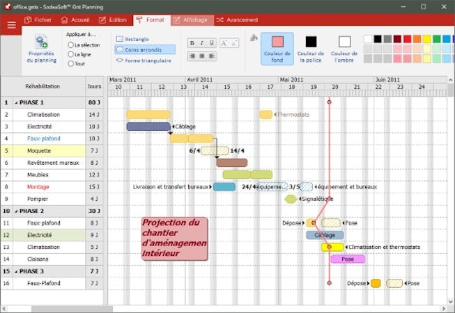 SodeaSoft Gantt Planning software is based on the concept of Gantt charts. It facilitates the scheduling and creation of provisional schedules, project schedules, and site monitoring schedules. Equipped with a PDF print generator, the program can create schedules without using Excel software.