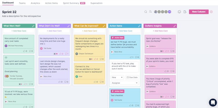 GoRetro streamlines sprint retrospective conversations and meetings using feedback collection, predefined templates, polls, upvoting, and more. It provides real-time visibility into task estimations, progress toward goals, and team sentiment and capacity.