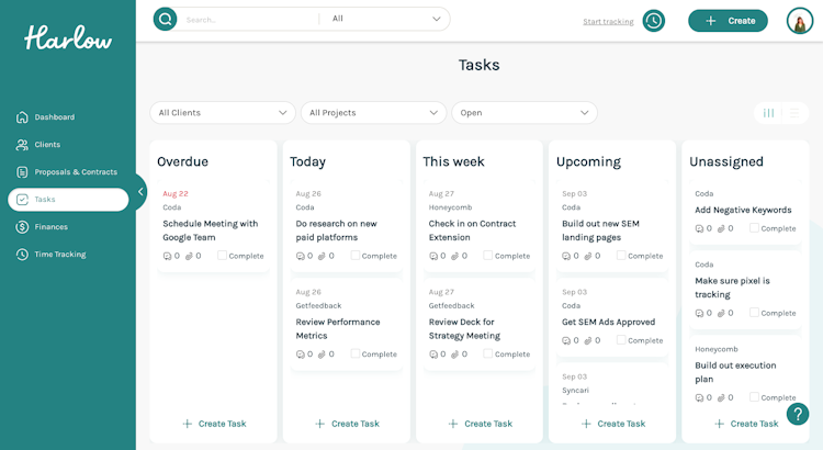 Harlow helps freelancers organize their day-to-day operations, get a full view of their clients, and get paid—all from one centralized hub.
