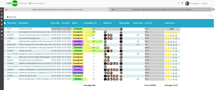 LUCKiwi Software is a task and project management solution designed to help teams to collaborate together and to facilitate the management of their tasks and projects.