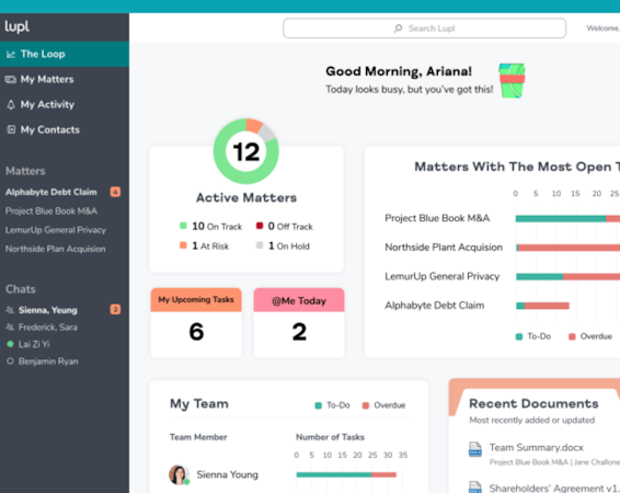 Lupl is a secure, collaborative workspace for law firms, corporate legal departments and clients that makes it easy for everyone to work together on legal matters within and between organizations.
