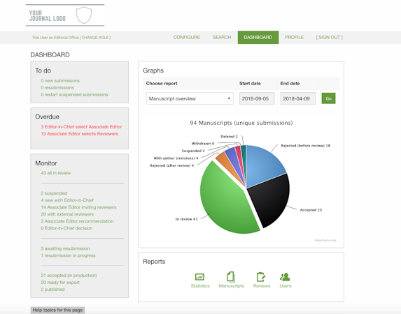 Manuscript Manager is a fully-featured, comprehensive peer review tool for academic publishers that offers a manuscript submission system and a peer review software solution. Teams can get a clear overview of tasks, automate correspondence and scale their publishing business with this enjoyable, role-based work suite.