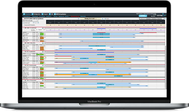 Among other things, the needs-based personnel planning adapts to customer frequency data, such as sales. Employment contracts, blocked periods, appointments, and qualifications are also considered. Where there are short-term changes, planning can be adapted manually, while work plans are updated automatically. The import of merchandise management data also makes requirements planning more precise. In addition to personnel planning, MEP24web offers a legally compliant, employee-oriented time-recording tool. It enables employees to record work times via a PC or mobile. If required, an additional module for electronic time recording is available. Traffic light accounts make negative totals and overtime hours visible.