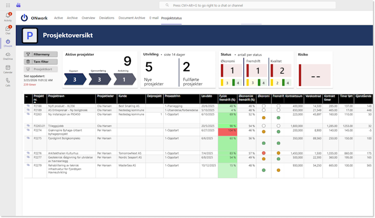 ONwork is a project management software platform that operates within Microsoft Teams to provide project-based organizations with centralized control over time, cost, and quality across entire project portfolios. The solution targets organizations that require structured execution and real-time oversight of concurrent initiatives. By embedding project delivery processes into the Teams environment, ONwork standardizes methodologies and delivers continuous visibility into performance metrics, risk indicators, and margin analysis for decision-making across the portfolio.