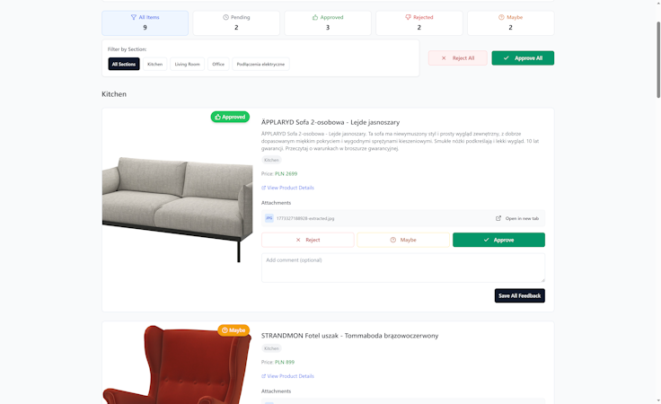 The platform offers a structured approach to the project lifecycle beginning with a Notion style Notes workspace for capturing discovery call details and initial documentation. Designers can compile visual inspirations on an Inspiration Board and share Magic Links to invite client contributions without account creation. The Canvas tool facilitates moodboard creation and enables single click transfer of items to the review queue. A Client Portal provides a frictionless approval mechanism for review, comment and sign off. A Kanban Board delivers a drag and drop interface with customizable status columns and filtering to track individual project workflows or firm wide workloads.