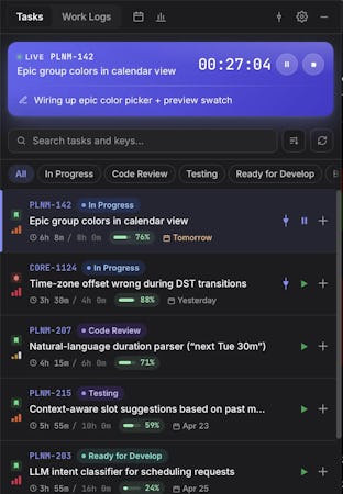 Planim Time for Jira is a native desktop application that enables accurate time tracking and bidirectional worklog synchronization with Jira environments. The application is designed for macOS, Windows, and Linux platforms and operates as a menu bar utility. It provides offline-capable time logging against Jira issues while retaining full functionality during network interruptions. The software stores all worklog data locally in SQLite format to ensure data resilience independent of Jira availability.