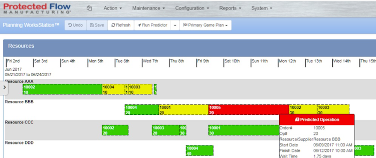 Protected Flow Manufacturing allows manufacturers to identify work orders at risk of being late and problematic operations that need urgent attention. Unlike traditional finite capacity scheduling, Protected Flow Manufacturing accounts for real-time variability and adjusts production planning accordingly to prevent resource bottlenecks, increased wait times, and confusion over priorities.