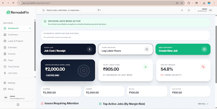 RemodelFin is a real-time job costing and financial tracking software designed for remodeling and general contractors. The platform addresses the challenge of delayed financial visibility by providing immediate insight into project profitability and cost management throughout the construction lifecycle.