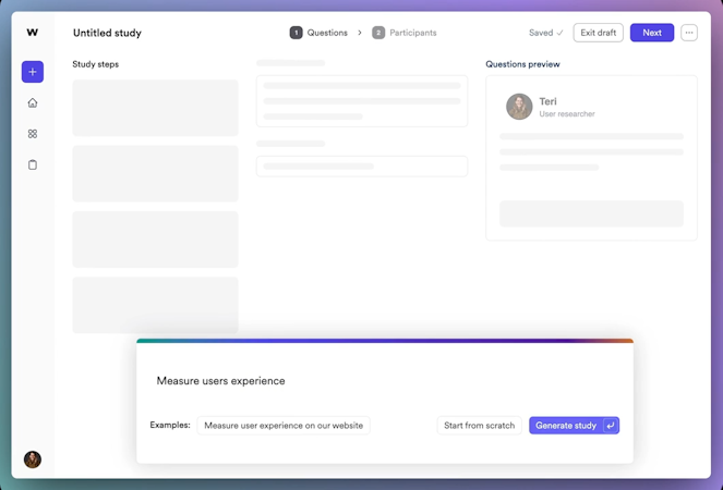 The platform automates study creation, integrating methodologies like in-depth interviews, concept tests, and surveys. Studies can be deployed in-product or to Wondering's global panel of 120,000+ participants. AI analysis swiftly transforms data into actionable insights, identifying themes and product opportunities in real-time.