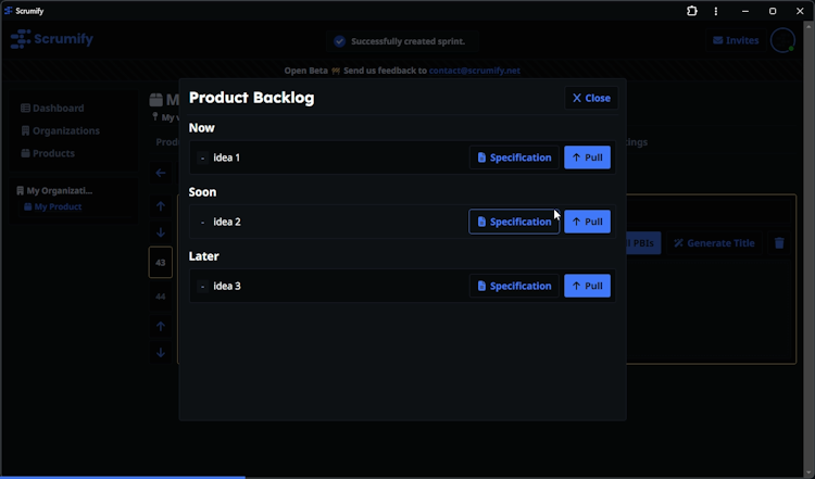 Scrumify also promotes a collaborative and self-organizing team dynamic by preventing micromanagement. Tasks are not assigned to individuals; instead, team members are responsible for communicating and dividing work among themselves, fostering a sense of shared responsibility and agility. The platform's Scrum Board and Sprint Planning features enable teams to visualize their progress, plan their work collaboratively, and adapt to changing requirements seamlessly. With Scrumify, teams can transform their product vision into reality, one sprint at a time, with clarity, focus, and tangible results.