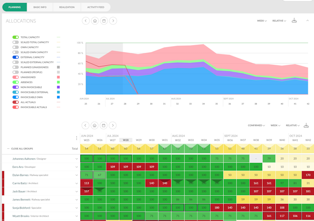All projects, people and capacity levels can be monitored from a single view. No more guessing about the resourcing situation - it is time to start knowledge-based resource management.