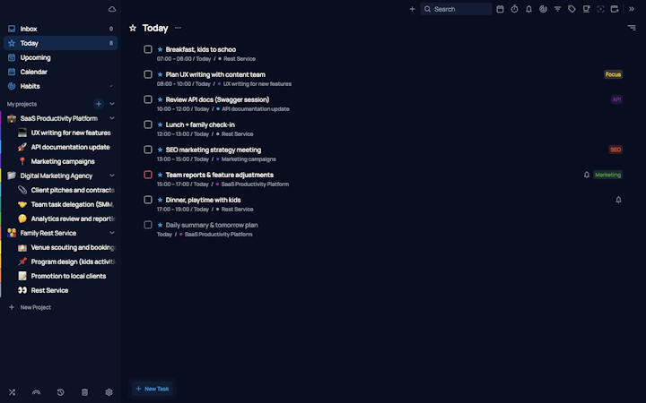 • Capture tasks from anywhere — Add tasks through the app, a Telegram bot, email, or voice input. Set multiple reminders, alarm-style notifications, and location-based alerts so nothing falls through the cracks.