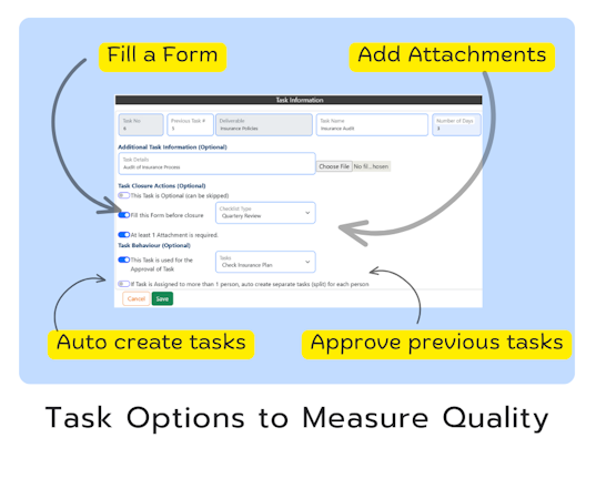 Smart LAP enhances business performance by focusing on both work speed and quality measurement. The system integrates data across all features to provide real-time updates and facilitate informed decision-making. Project tasks can incorporate forms, attachments, and approval workflows to ensure deliverable quality, while the calendar automatically populates with tasks, requests, and leave applications, marking them complete when finished. The platform supports both automatic and manual workflow creation, enabling efficient communication between customers and project teams, employees and support teams, and managers and their staff.
