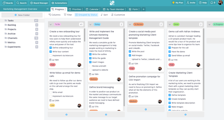 Infinity offers six views to its users, including Table, Columns, List, Calendar, Gantt, and Form, as well as a customizable structure (workspaces, boards, folders, items) that adapts to your needs. Add to the mix over 20 attributes, filters, groups, color-coding, and a number of other customization options, and you'll be able to create a system that works for you the best.