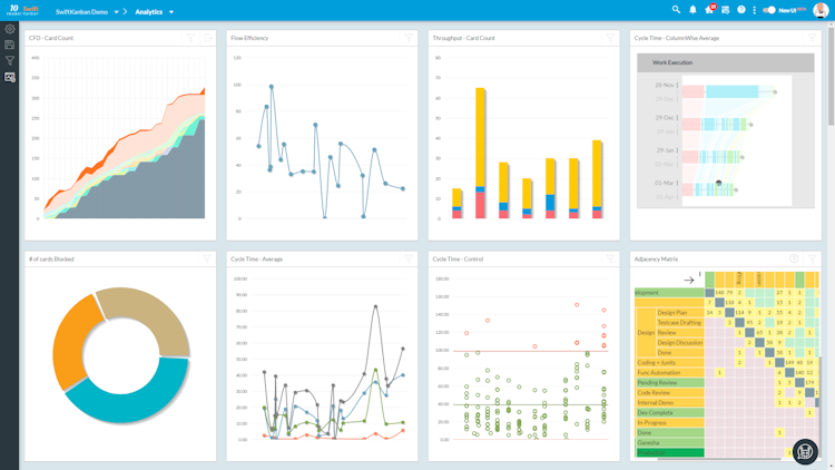 SwiftKanban provides you an extensive set of features to help you visualize your current/ new workflow and work, define WIP limits, highlight bottlenecks, help them with their daily standups, retrospectives and other regular meetings; and get extensive actionable analytics to help improve their overall process and flow.