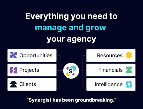 Synergist brings together everything you need to manage your agency – from new business to billing and everything in between – all in one scalable platform.