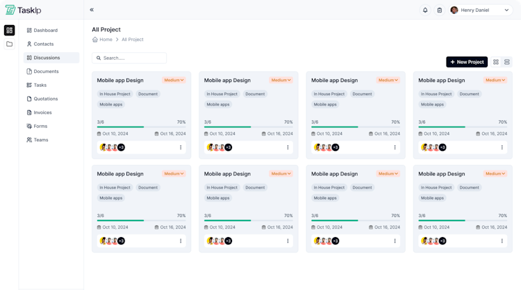 Taskip is a client management solution designed to streamline the workflow of agencies and businesses that enables users to manage clients, projects, teams, proposals, contracts, and invoices.