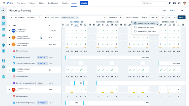 Capacity Planner by Tempo is a resource planning solution built to centralize and fast-track the planning process and capture actionable insights into your workforce operations. Use Tempo Planner to schedule work for any timeline and adjust locations, holiday schemes, vacations, and working hours. Uncover staffing needs early in the process and quickly see where your team has bandwidth to take on additional work while ensuring workloads are balanced and realistic. Drive more integrations and automation between Jira and your ecosystem of solutions.